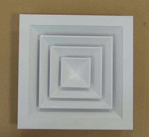 方形散流器先調(diào)挺直,表面光潔,葉片角度為固定式,葉片采用夾角片沖壓連接,整個(gè)葉片與邊框采用分離式結(jié)構(gòu),以方便安裝與調(diào)節(jié)。設(shè)計(jì)時(shí)可根據(jù)房間造型不同,選用不同出風(fēng)方向的散流器,可與調(diào)節(jié)閥配套使用鋁合金表面經(jīng)陽極氧化處理,也可根據(jù)用戶要求進(jìn)行靜電噴塑處理。