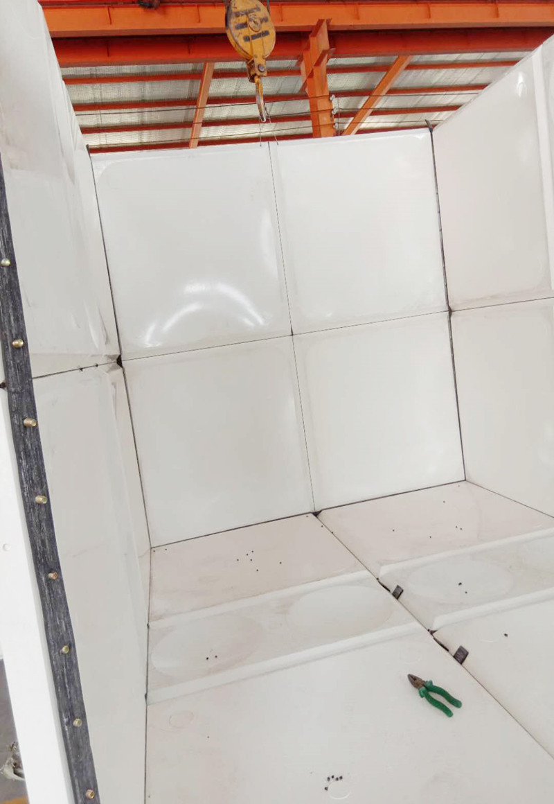 公司玻璃鋼水箱車間師傅們完成了兩臺玻璃鋼水箱的組裝。整體發貨。